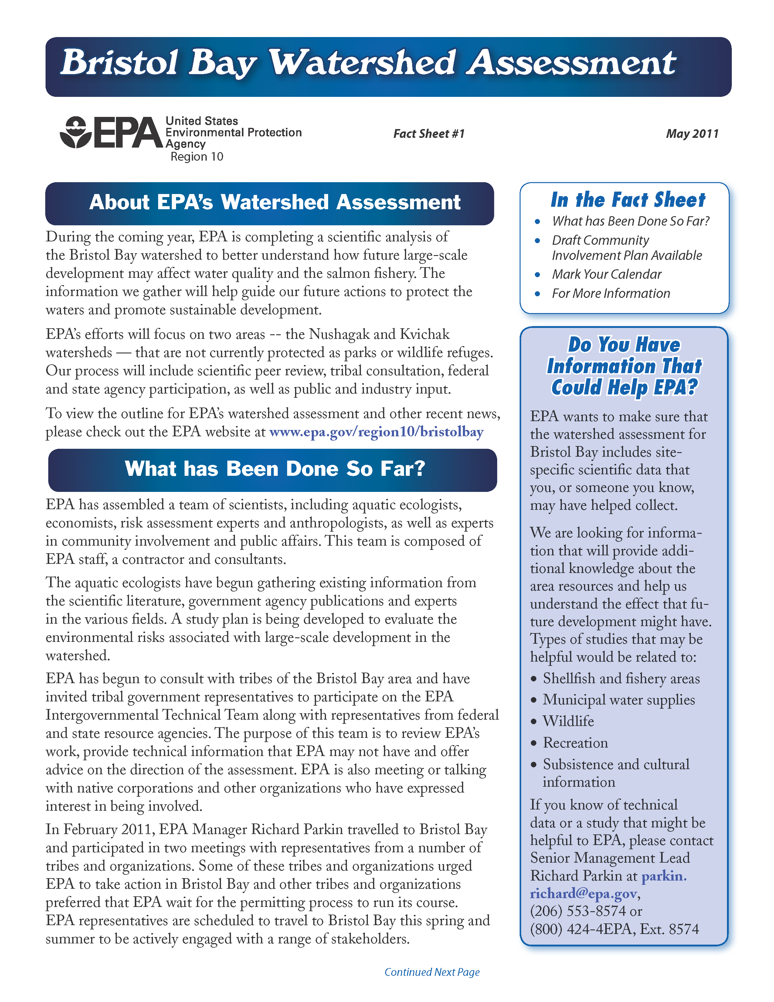 Environmental Protection Agency Region 10 mining information session in Iliamna. EPA is holding the sessions June 2 in Iliamna and June 3 in Dillingham. No further information on presenters, format or timing is available at this time. The meetings relate to the EPA’s scientific assessment of the Bristol Bay watershed. For more information, see earlier … Continued