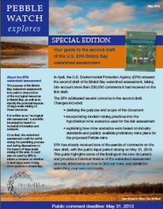 The public has until Friday, May 31, to comment on the EPA’s revised Bristol Bay watershed assessment. The EPA has received more than 150,000 comments on the document already. Read this Pebble Watch guide for public comment details, as well as a quick overview of major changes in this version of the assessment.
