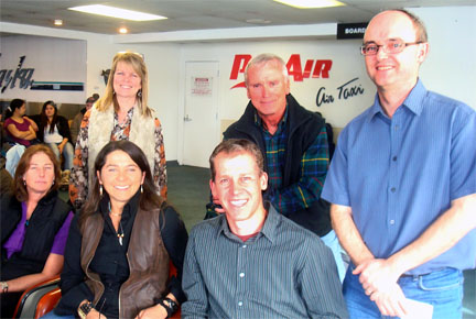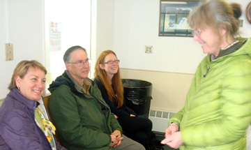 Pebble Limited Partnership staff and contracted scientists waiting at the Dillingham airport after the WASIC conference. Front, l. to r.: Jane Whitsett (PLP), Laura Tesch (PLP), Dr. Jaime Cathcart (Knight Piesold). Back, l. to r.: Dr. MaryLou Keefe (R2 Resources), Dr. Dudley Reiser (R2 Resources), Dr. Stephen Day (SRK Consulting)