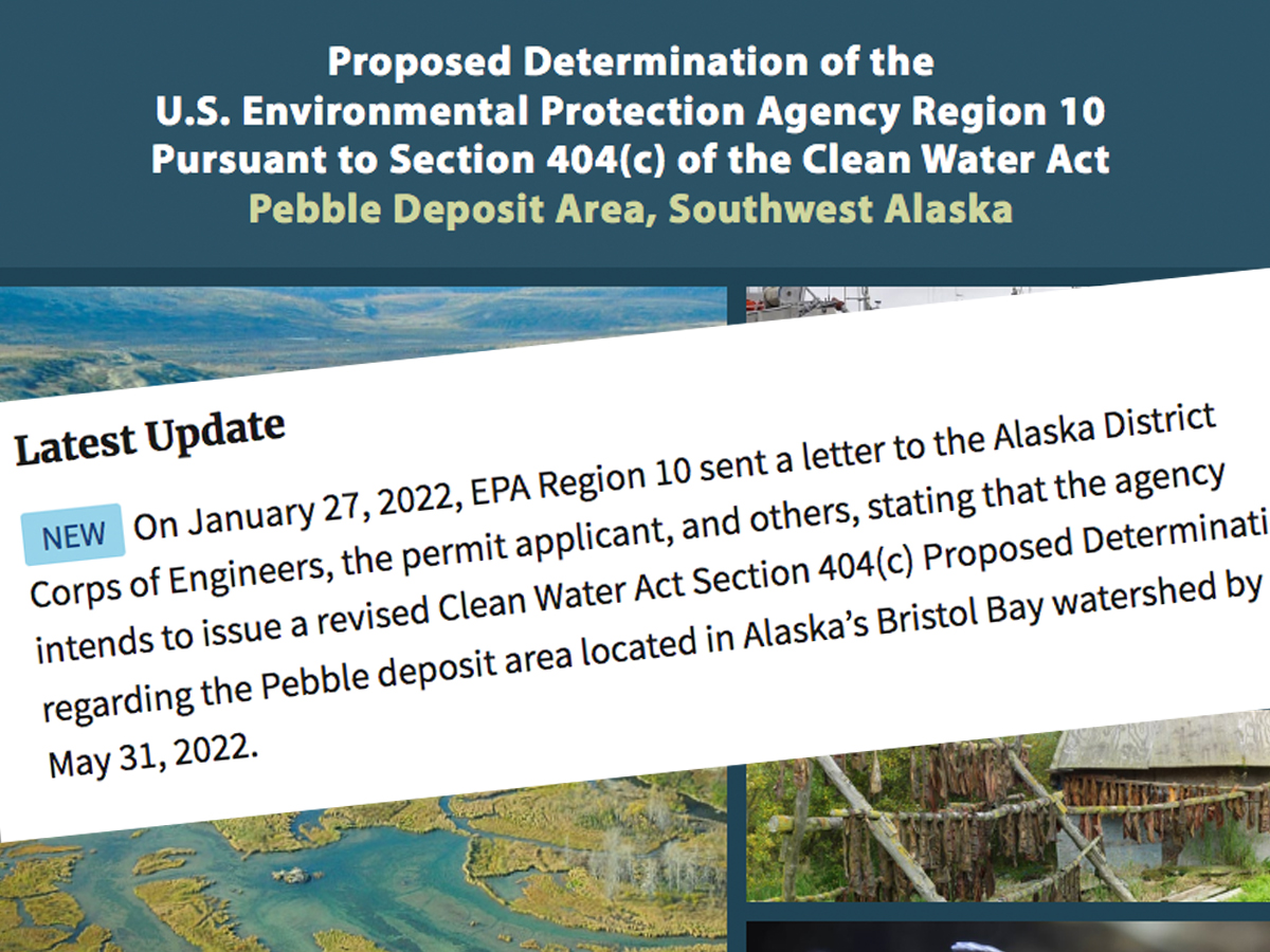 On January 27, the U.S. Environmental Protection Agency (EPA) announced its intent to issue a revised version of a Clean Water Act 404(c) Proposed Determination regarding the Pebble deposit. EPA notified Pebble developers and the U.S. Army Corps of Engineers directly “to ensure there is ample opportunity for full consideration of available information to determine … Continued